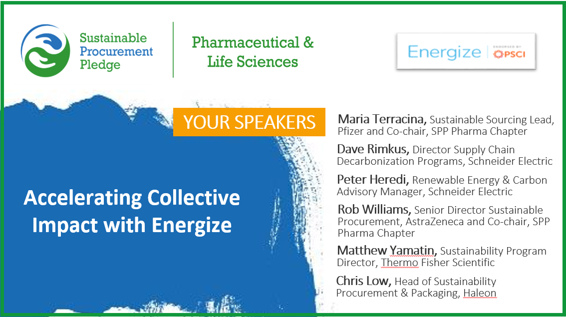 - Maria Terracina, Sustainable Sourcing Lead, Pfizer and Co-chair, SPP Pharma Chapter